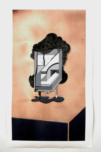 Relief painting made of stacked paper, gauche and mounted on giclee print